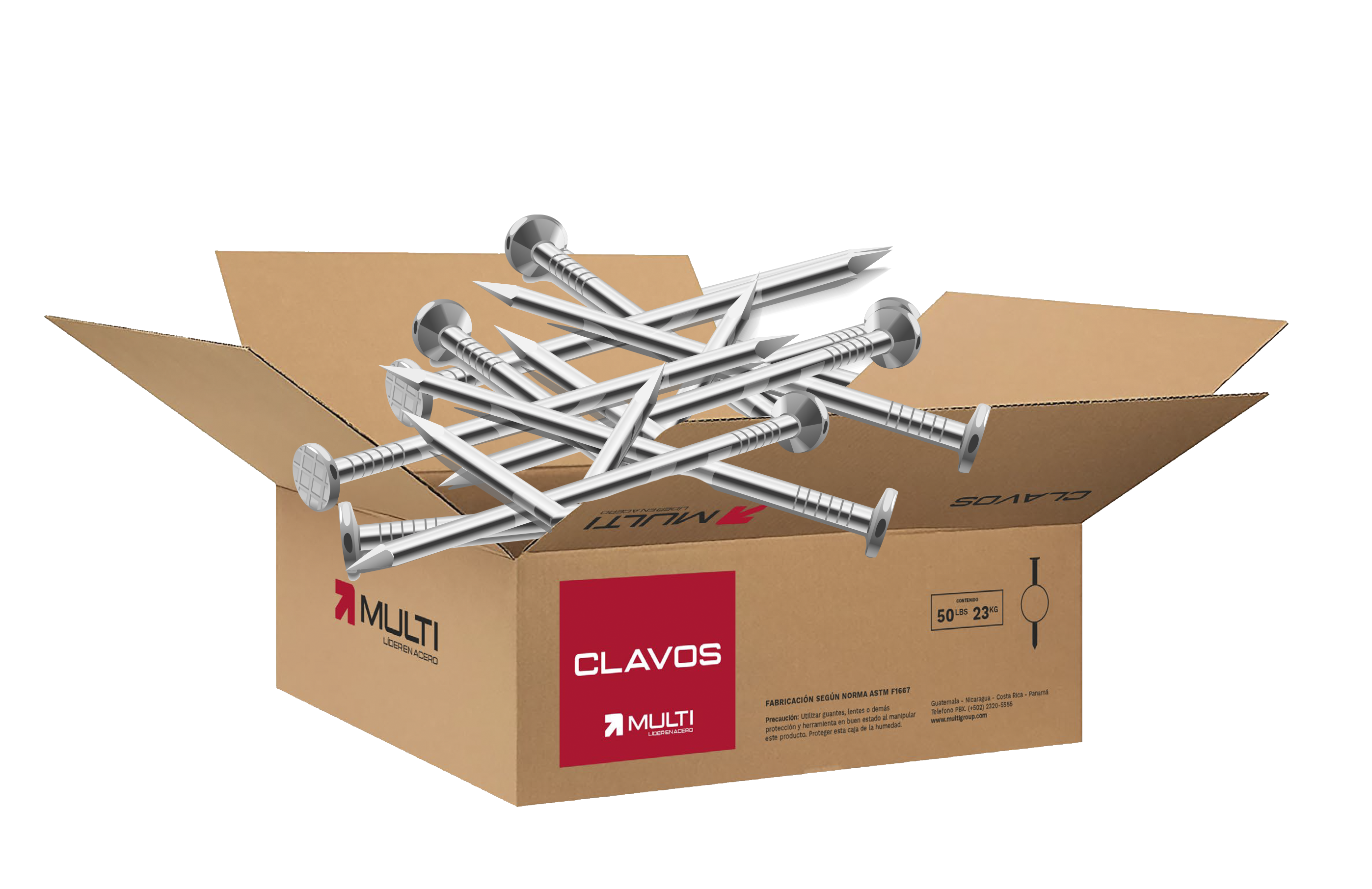 Clavo tradicional de acero, fabricado de alambre trefilado. Con cabeza plana texturizada para mejor agarre del impacto, punta en forma de diamante y superficie pulida brillante. Disponible en 2″, 2 1/2″, 3″ y 4″.